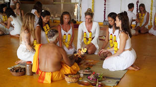 Once all our exams were complete, all students ended their Yoga Teacher Training with Closing Ceremony and Graduation. This time round no-one didn't pass which was such a relief. Again we wore white, and had another ceremony where we chanted mantras and were invited to offer fragrant medial herbs and grains into the fire in small groups. We then had Graduation ceremony where we were awarded our certificates. Afterward we had some vegetarian food before making out way to the beach for photos at the beach. This was such a joyous occasion where we could all celebrate each others achievements. I felt really connected with the students, teachers and friends I had made. It was an amazing journey to go on and connect with such beautiful souls.